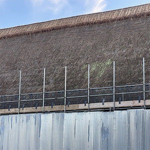 The roof ridge is the section along the top of the roof, and this is now being replaced with new thatch, thus extending the life of the roof for another 30-40 years.